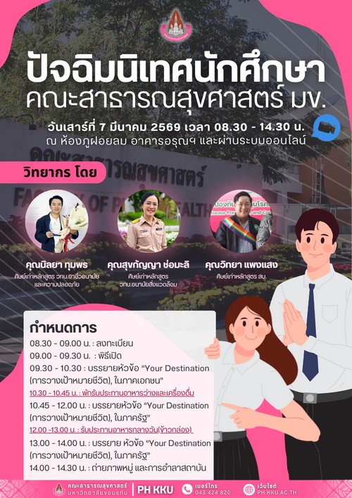 ขอเชิญเข้าร่วมโครงการปัจฉิมนิเทศนักศึกษาชั้นปีที่ 4 ทุกหลักสูตร ประจำปีการศึกษา 2568
